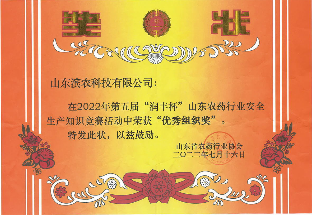 ■2022-08-30 我公司榮獲第五屆“潤(rùn)豐杯”山東農(nóng)藥行業(yè)安全生產(chǎn)知識(shí)競(jìng)賽“優(yōu)秀組織獎(jiǎng)”