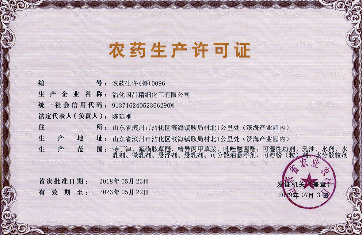 ■2019-09-05 沾化國昌精細化工有限公司農藥生產許可證