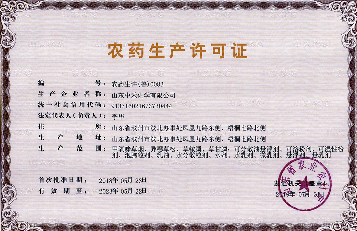 ■2019-09-05 山東中禾化學有限公司農藥生產許可證