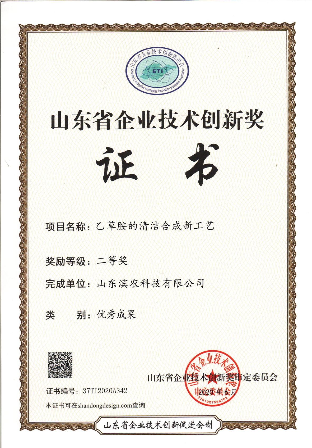 ■2021-04-08 2020-08-05 我公司成果“乙草胺的清潔合成新工藝”榮獲山東省企業技術創新獎優