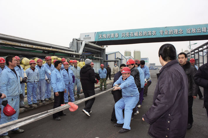2010年 2月7日上午,二分廠懸浮劑車間舉辦了2010年第一屆車間趣味運動會,二分廠廠長鄭軍做了賽前講話。比賽分為三個環節:第一項拔河比賽,體現團隊精神。第二項綁腿跑比賽,體現協作能力和技巧。第三項滾大桶比賽,考驗賽手掌握技巧能力。比賽競爭激烈,各選手備戰十足。拔河比賽最終由牟俊龍、王朋會、呂清華、聶國俊、劉亞臣、孫大慶、孟祥輝、劉衛東、付志樂、王汝江十名員工奪冠;綁腿跑比賽由趙洪泉、李樹泉;李偉松、崔連友;王汝江、薛呈濱三組員工榮獲前三;滾大桶比賽中,陳會永、宋建永、周洪星三人脫穎而出。