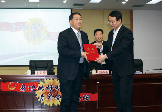 3月24日,為動員全區(qū)青年以黃河三角洲高效生態(tài)經(jīng)濟(jì)區(qū)開發(fā)為契機(jī),唱響科學(xué)發(fā)展主旋律,投身創(chuàng)業(yè)富民主戰(zhàn)場,共青團(tuán)濱城區(qū)委啟動“身邊的榜樣——青年創(chuàng)業(yè)論壇”,我集團(tuán)公司董事長黃延昌被特聘為“青年創(chuàng)業(yè)導(dǎo)師”。
