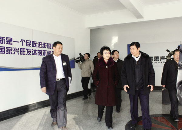 之后,于部長、孫書記一行來到我公司省級研發中心——集成化工研究所實地視察指導,對研發工作表示了極大關注,鼓勵我公司要加強加大研發投入,尋找市場空白點,以科技領先帶動市場領先。