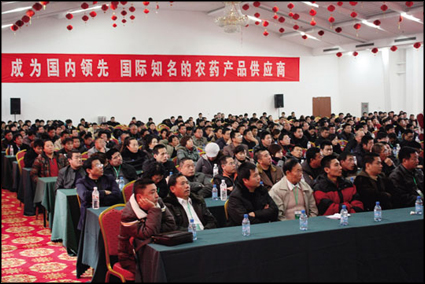黃總講話之后,我公司事業(yè)部經(jīng)理張于法、李永奎分別對明年的營銷思路和政策作了解析。下午,我公司產(chǎn)品經(jīng)理高三土、劉杰分別針對明年上市的新產(chǎn)品作了詳細講解。之后,山東農(nóng)業(yè)大學王開運教授作了專題授課,重點講解了中國農(nóng)藥行業(yè)的研發(fā)、推廣現(xiàn)狀及未來世界農(nóng)藥的發(fā)展趨勢,頗受好評。