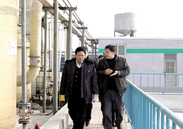 2009年12月22日上午,國家環保部華北督查中心領導會同省環保廳領導,在市環保局局長王惠軍、區環保局局長孫文博等人的陪同下,蒞臨我公司視察污水處理再提高工程完成情況。公司董事長黃延昌、生產總監張玉瑞全程陪同并做詳細匯報。