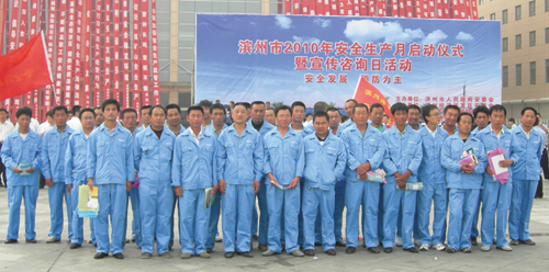 6月5日上午,濱州市2010年“安全生產月”啟動儀式即“宣傳咨詢日活動”在市長途汽車站站前廣場舉行。活動由市安委會、經濟開發區安委會、市公安局消防大隊主辦,濱州交運集團承辦。市委書記鄧向陽及各相關單位負責人、企業代表出席啟動儀式,我司50名員工在安環部副主任王關華及安全員司福來的帶領下,作為濱城區企業代表參加了此次活動。